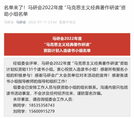 马研会2022年度“马克思主义经典著作研读”资助计划全国拟资助131个读书小组,云南4个读书小组入围。云南农大“思政小组”有幸成为其中一员,将不忘初心,矢志不渝,坚定践行“学习马克思主义基本原理及其中国化最新成果,研讨重大理论和现实问题,巩固马克思主义在意识形态领域的指导地位,落实学校立德树人根本任务”。