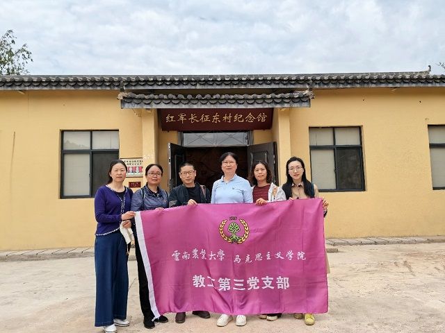 三支部党员教师在普渡村任正荣书记带领下首先参观了牛栏江水源保护区湿地建设工程。该工程项目的实施,让普渡村呈现出生态振兴的良好面貌。紧接着,沿着崎岖蜿蜒的山路,大家来到了东村村红军长征东村纪念馆。这里最为珍贵的文物就是1935年红军长征路过嵩明东村龙王庙时候留下的标语:“农民起来实行土地革命”。支部党员们在这里面对党旗,重温入党誓词。