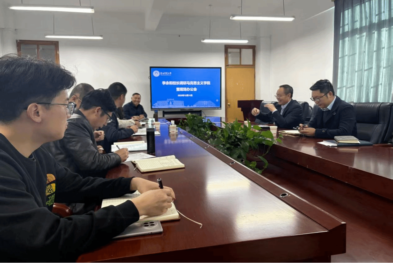 李永和对学院下步工作提出三点要求:一是要认真学习宣传贯彻落实党的二十届四中全会精神,保持团结干事的良好氛围,认真谋划学院“十五五”事业发展规划;二是要持续在思政课教学质量提升、有组织的科研和团队建设等方面发力,不断提升思政课教学思想性、针对性和实效性,学院科研工作要结合学校的优势和特点,争取有高水平的科研产出;三是要加强团队队伍建设,抓好人才引进和教师培训研修等工作,尤其是要关心青年教师的发展,在教学、科研等方面给予更多的帮助支持。